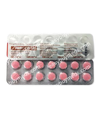 Famotidine reduces amount of acid in the stomach assisting treatment and prevention of ulcers in the stomach and intestines.