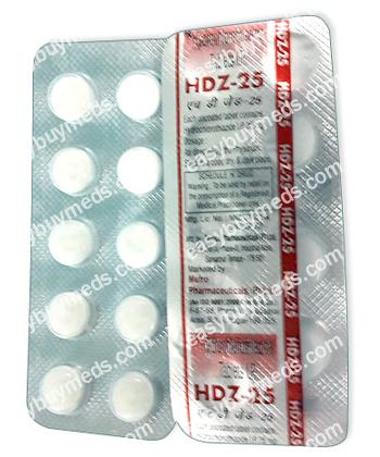 The medication is usually taken once daily in the morning, with or without food. Dosage varies depending on the condition being treated and individual response, typically starting at 12.5–25 mg per day. Take the tablet with a full glass of water. Avoid taking it late in the day to prevent nighttime urination.